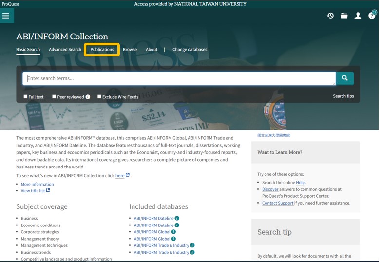 - ABI/INFORM [ProQuest] 商業管理資料庫檢索功能簡介
