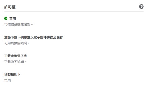 在 EBSCOhost 電子書頁面,該書下方有標註其許可權。